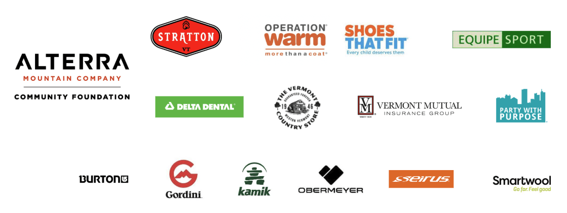 Alterra Mountain Company Community Foundation * Pierce Amery * Barrows House * Bromley Mountain Ski Resort * Michael & Karen Carreira * John B. & Leslie Cooper * Andrew & Julie Delinsky * Ed & Janet Lee * Michael Farley * Jennifer Mebes & David Flagg * Paul & Patricia Frank * Virginia Gilbert * Russell & Laura Griffith * Robert & Viviana Holzer * William Jessup * Matt Jones * Marianne Kay * Harry Keegan * Steve & Diane Kerstein * Kevin Duffy & Hilary LaForge * Edward & Janet Lee * Lincoln Maples Hardware * Jacqueline Lisk * Allison Lynch * Magic Mountain * Anthony & Alexis Matrone * Bruce & Beth McDonald * Thomas & Kim Meisner * Meredith Morin * Ernest & Joan Muir * NE Delta Dental * Katherine Nolan * Party with Purpose * rk MILES * Suzanne Rueck * Carolyn Sells * Mark Slade * Vicki & Sandy Smul * Stratton Mountain Golf Course * Stratton Mountain Resort * Mary Sullivan * The Vermont Butcher Shop * The Vermont Country Store, Inc. * Michelle Van Buren * Vermont Mutual Insurance * Jerry & Elaine Villano * Von Bargen's * Richard Wheeler